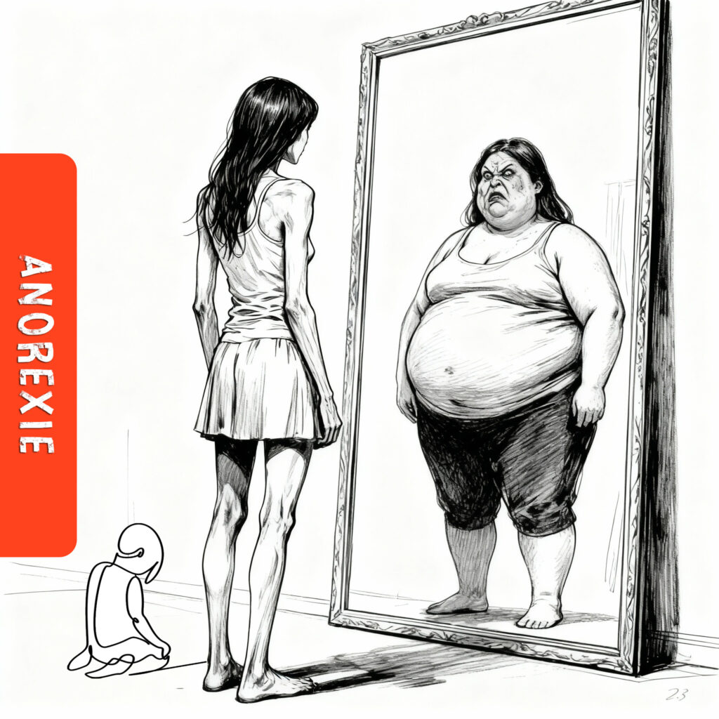 Anorexia nervosa ist eine ernsthafte psychische Erkrankung, die durch einen selbst herbeigeführten Gewichtsverlust, eine intensive Angst vor Gewichtszunahme und eine gestörte Körperwahrnehmung gekennzeichnet ist. Betroffene haben oft ein verzerrtes Bild ihres eigenen Körpers und nehmen sich selbst als „zu dick“ wahr, obwohl sie untergewichtig sind.